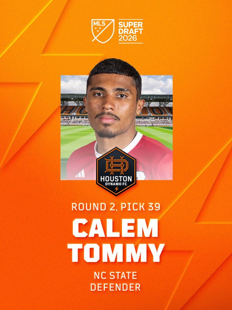 22-year-old defender Calem Tommy was picked up in the second round of the draft by Houston on Thursday, having spent the last five and a half years in the USA, first at boarding school Northwood College in Lake Placid, before attending North Carolina State University.