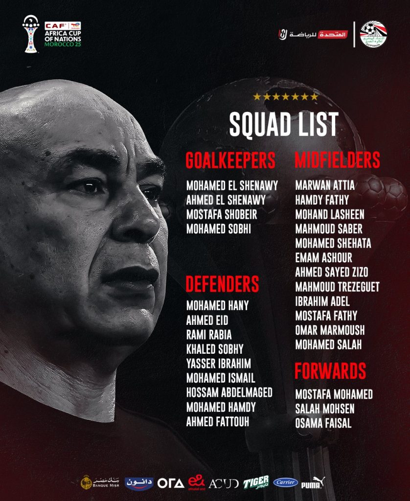 Egypt national team head coach Hossam Hassan has announced his 28-man squad that will participate in the upcoming AFCON in Morocco.