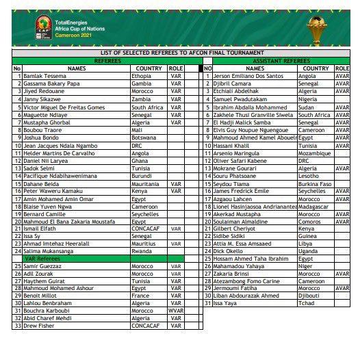 The AFCON will have VAR, with both Ndiaye and Gomez also being listed as VAR referees.
