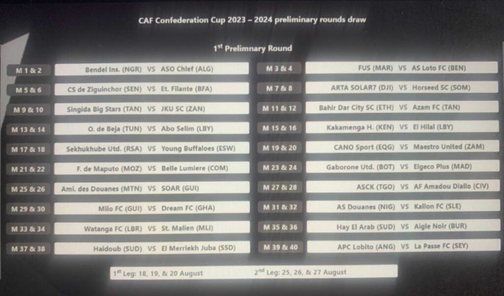 SuperSport United and Sekhukhune United have both found out which teams they will face in the CAF Confederations Cup preliminary round.