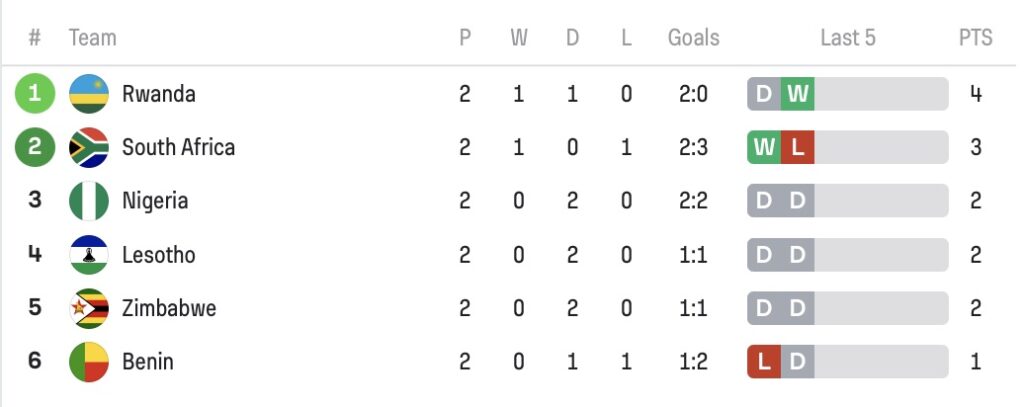 Just a few days later, Hugo Broos’ men will host Zimbabwe, who also sit on two points from two matches, while Bafana have picked up three against Benin before their shock defeat in Rwanda.