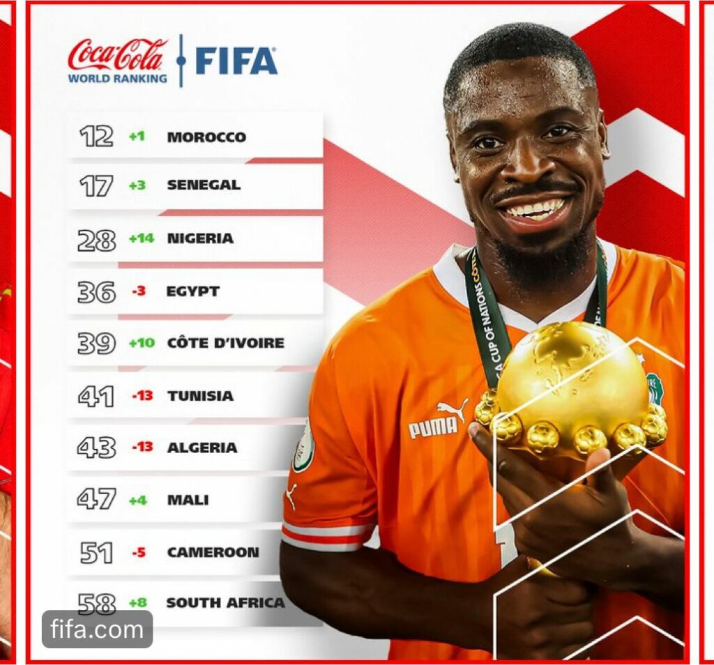 Bafana’s excellent showing in Ivory Coast has seen them return to the top ten in Africa for the first time in almost a decade.