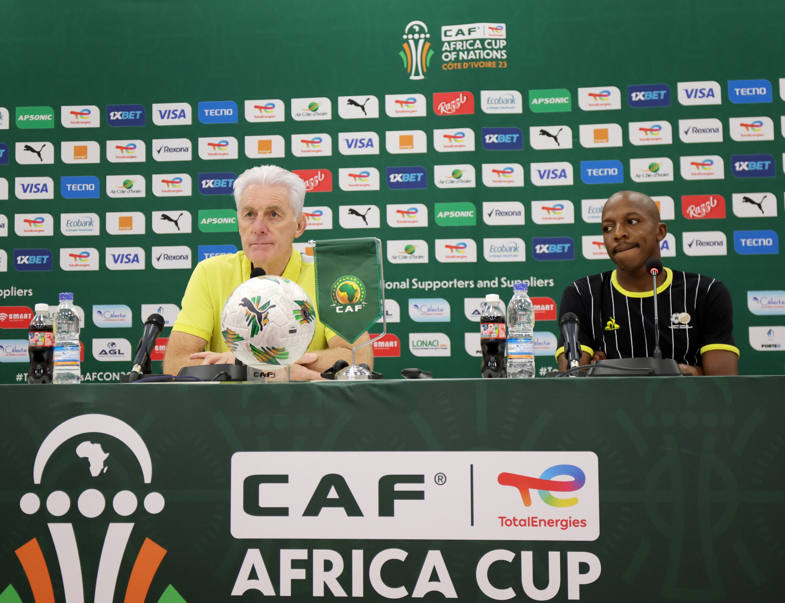 “We had two problems after the game against Tunisia, Mothobi got a direct kick, not really a problem, he’s treated but it’s painful, might not be a problem for Tuesday,” Broos said.