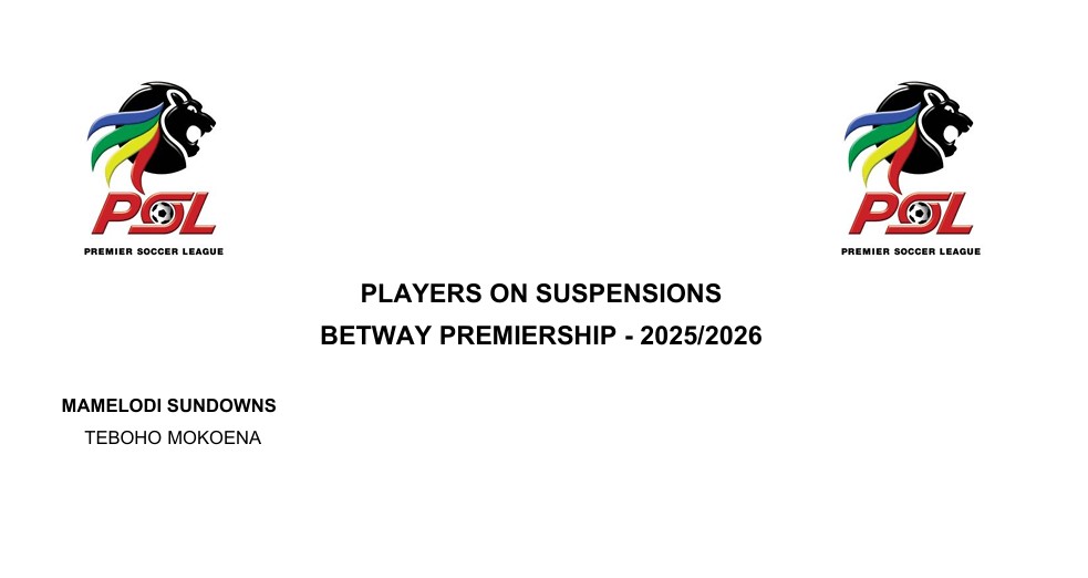 Mokoena, 29, is the only suspended player across all 16 teams for this week’s matches though his teammates – Aubrey Modiba, Arthur Sales and Keanu Cupido are all on a suspension tightrope as they sit on three yellow cards each.