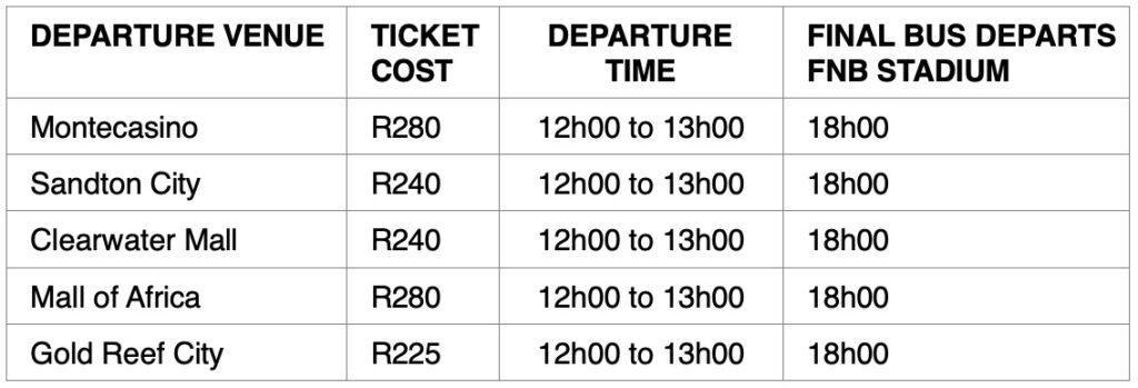 In addition, Stadium Management South Africa (SMSA) announced the implementation of a park and ride system for the highly anticipated clash.