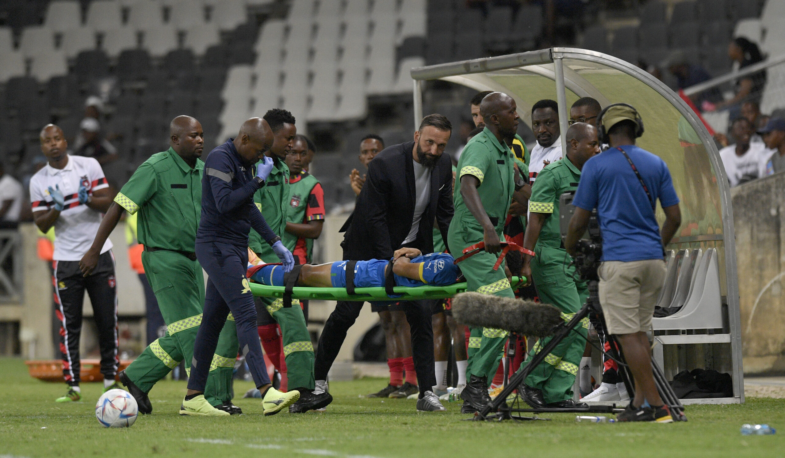 After a prolonged period of treatment, the former PSL Defender of the Season was stretchered off the field of play and replaced by Brian Onyango.