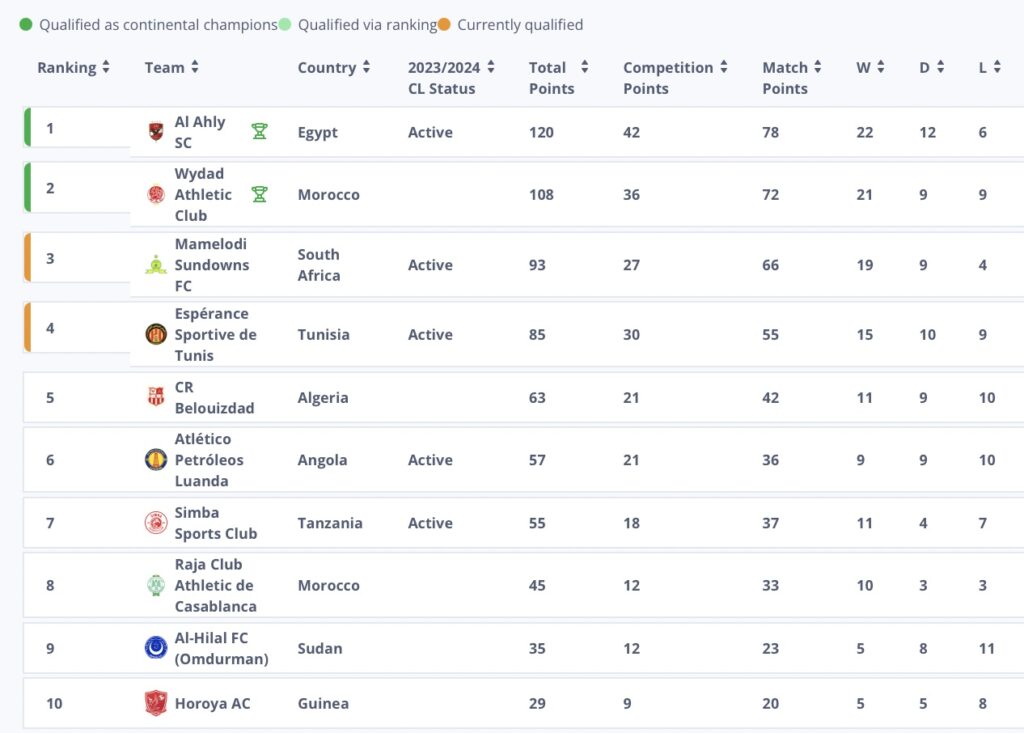 If Al Ahly would win the CAF Champions League again, the teams ranked in third and fourth in the CAF ranking will qualify for the 2025 FIFA Club World Cup.