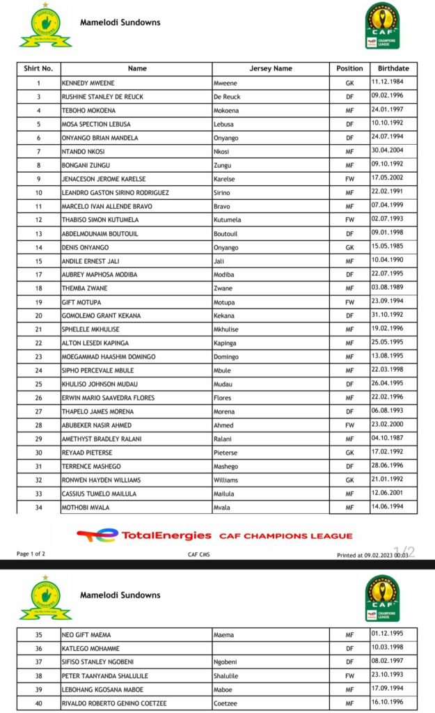 Mamelodi Sundowns have named Ntando Nkosi and Jerome Karelse as part of their registered CAF Champions League squad.