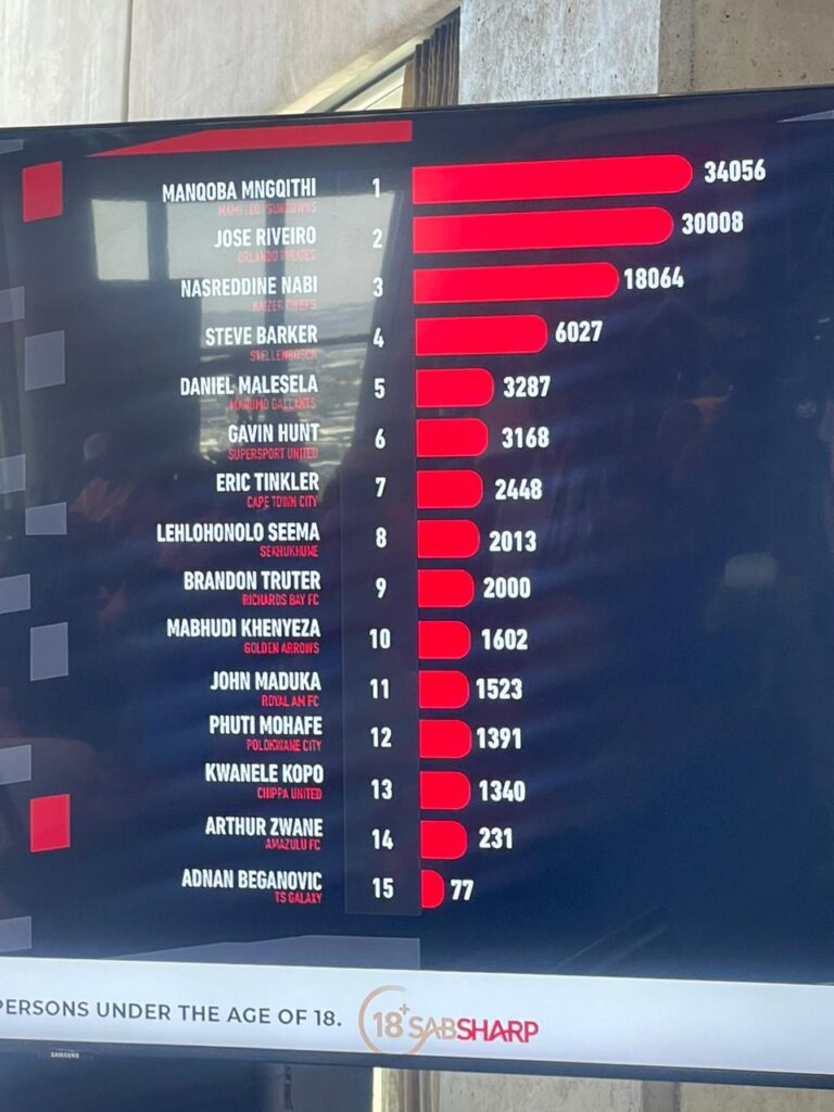 Mamelodi Sundowns coach Manqoba Mngqithi currently leads the Carling Black Label Cup coach leaderboard with 34056 votes ahead of Orlando Pirates’ Jose Riveiro in second place sitting on 30008 votes.