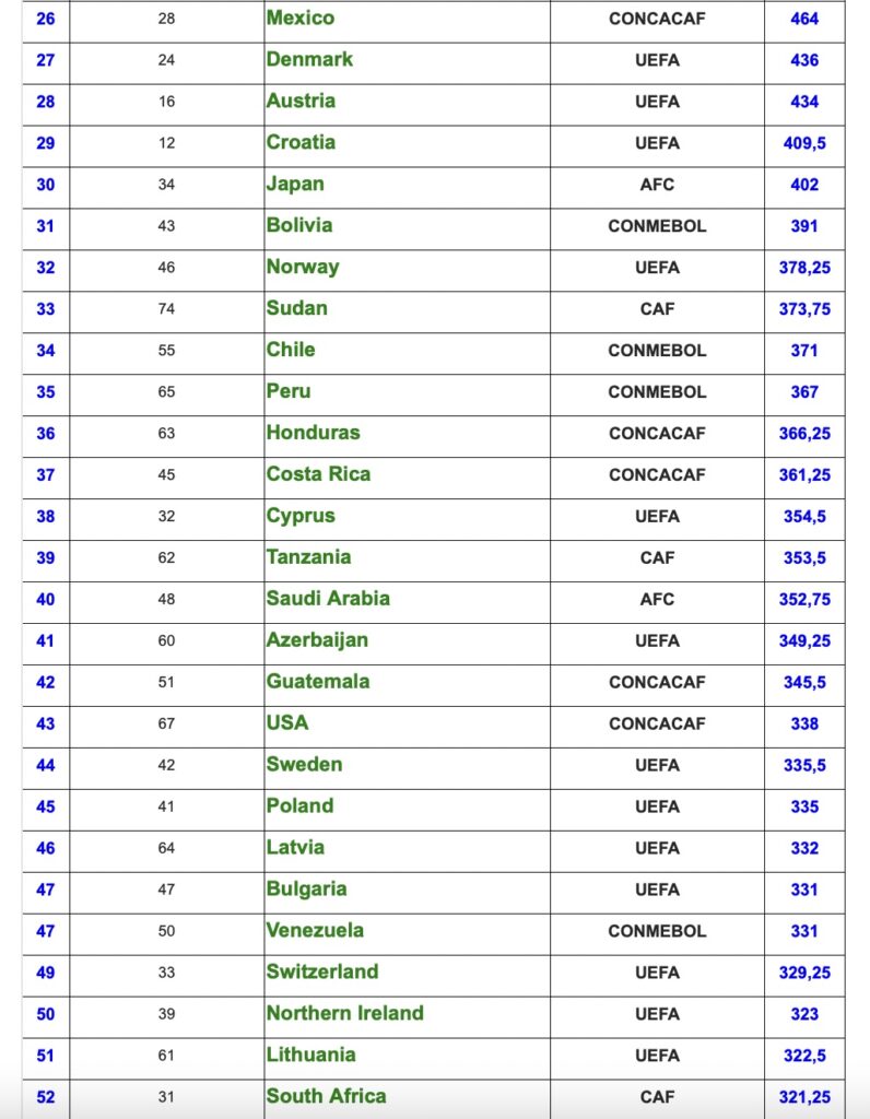 Meanwhile, the Egyptian Premier League is Africa’s strongest league and finished in 13th place worldwide, while the Algerian Ligue 1 ended in 20th worldwide and second on the continent.