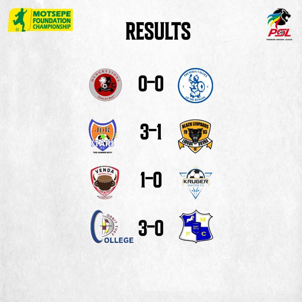 Meanwhile, the other Limpopo side Black Leopards were handed a 3-1 hammering at Giant Stadium by JDR Stars. Mwape Musonda opened the scoring for Lidoda Duvha but the lead was short-lived as Tshepo Mokhabi found the equaliser before last season’s MFC golden boot winner Prince Nxumalo scored the second goal for Stars. Banele Hlophe put the match to bed with the third to complete the comeback.