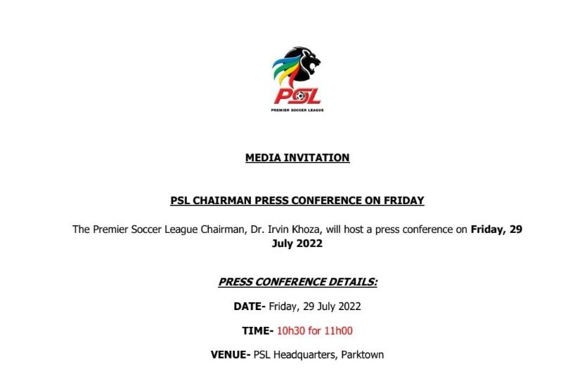 Premier Soccer League chairman Dr. Irvin Khoza will hold a press confidence on Friday.