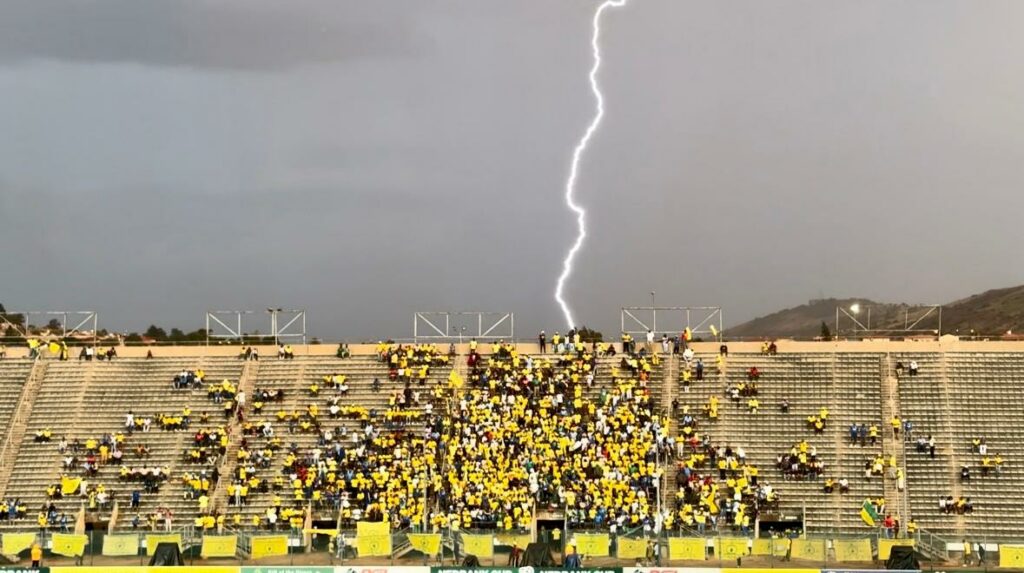 In what was an underwhelming opening half from the DStv Premiership leaders, the most memorable action was the thunderstorm that halted the game for over an hour.