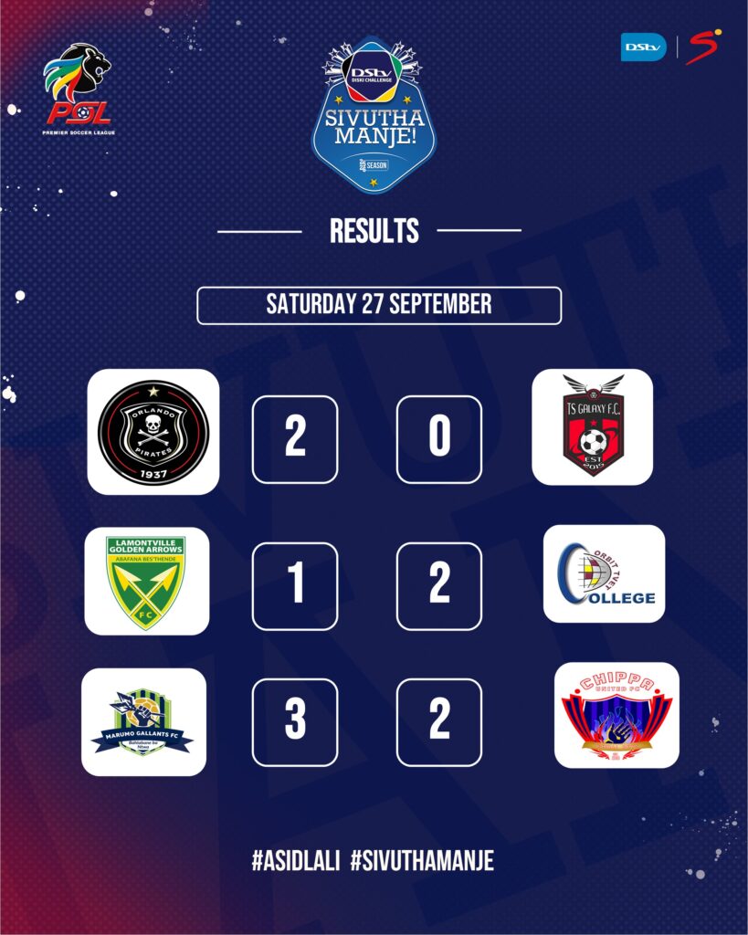 Elsewhere, Orbit College picked up a huge 2-1 win over Golden Arrows in KwaZulu-Natal while Marumo Gallants edged Chippa United 3-2.