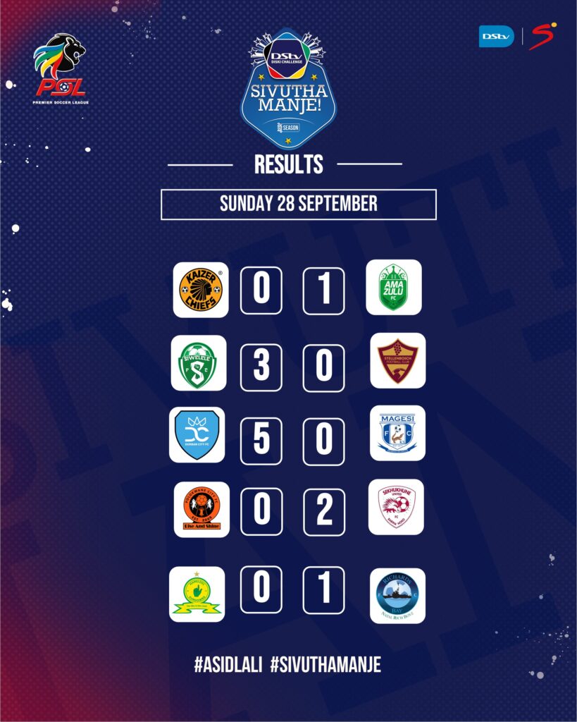 Sunday produced 12 goals across all five fixtures with defending champions Amakhosi losing their second match on the trot after going down 1-0 to AmaZulu FC at Sturrock Park.
