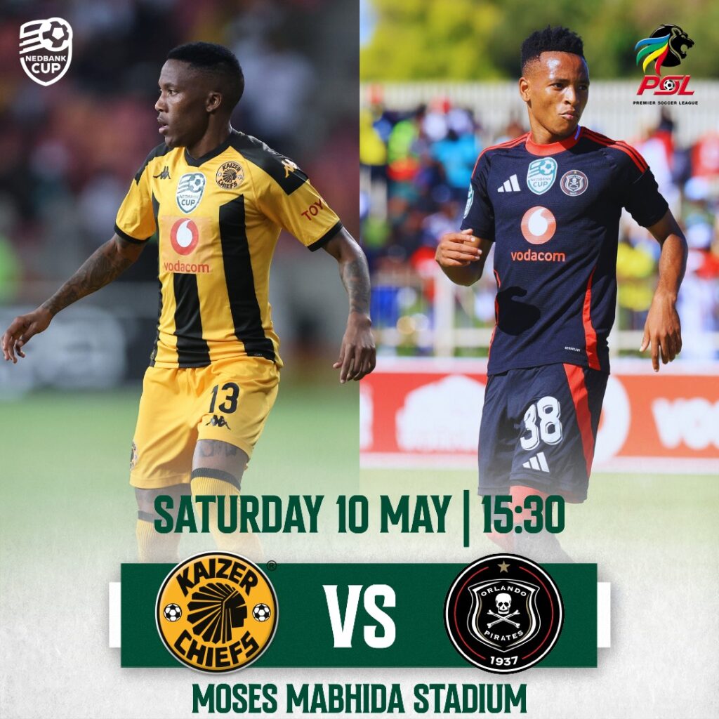 The Premier Soccer League has confirmed that the Nedbank Cup final Soweto Derby clash between Kaizer Chiefs and Orlando Pirates will kick off at 15:30.