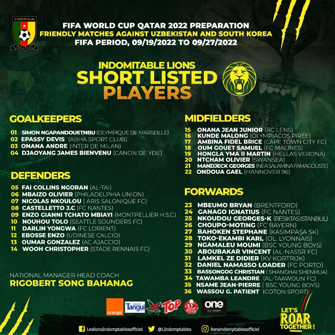 Cameroon 36-man provisional squad in full: