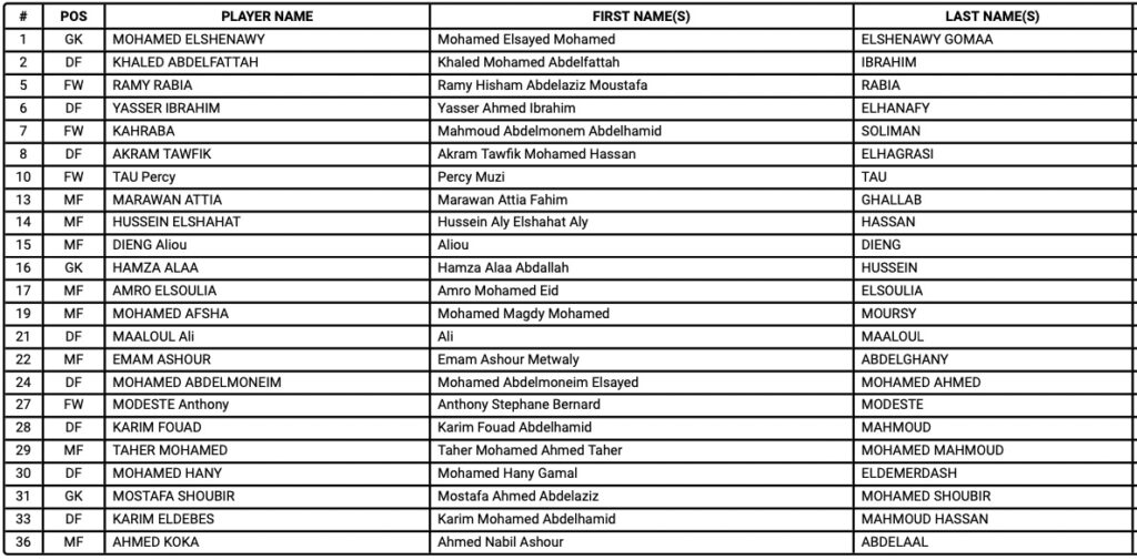Below is Al Ahly’s squad in full: