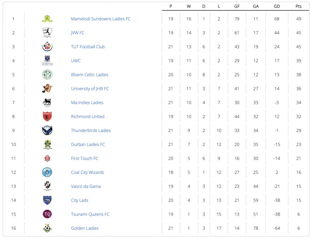 Golden Ladies sit at the bottom of the table with six points in 21 matches, equal with Tsunami Queens just above them but have played 19 games.