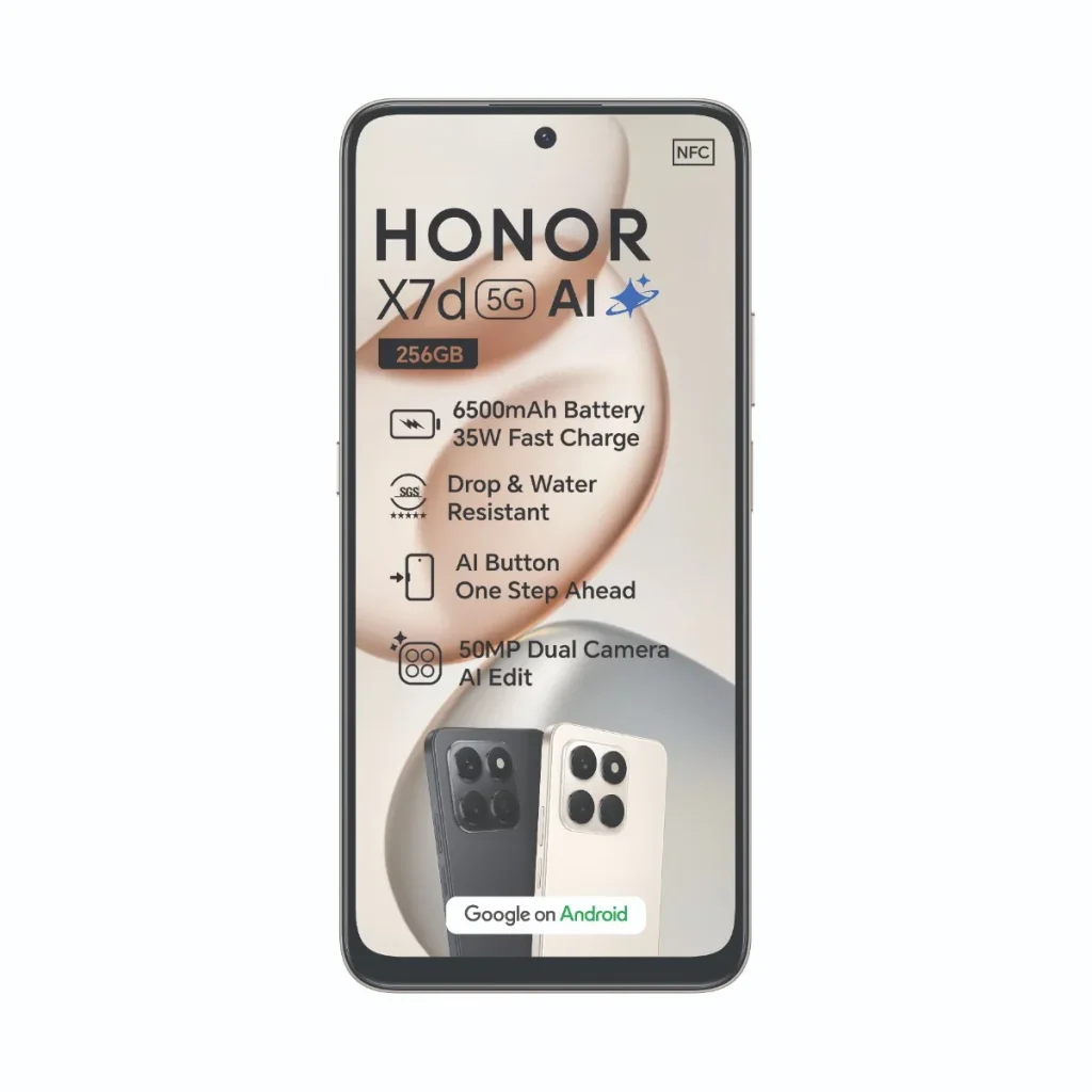The hot new release is remarkably durable, stylish and made for real-world adventures. The HONOR X7d 5G delivers flagship-level performance for everyday life. With IP65 water resistance, famous Instant AI Eraser Button, SGS Premium Drop Protection, and a 6 500 mAh battery, it’s the reliable companion for creators, professionals and everyone wanting more value in a smartphone.
