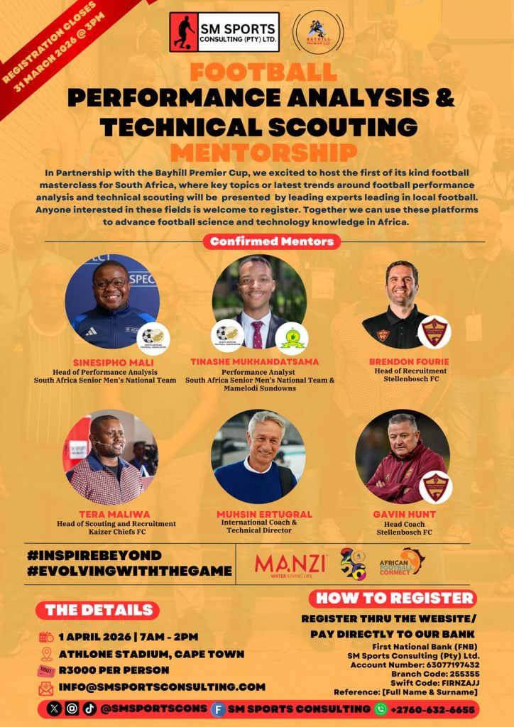 Being hosted by SM Sports Consulting in conjunction with the 2026 Bayhill Premier Cup, the one-day event is the first of its kind football masterclass for South Africa, where key topics or latest trends around football performance analysis and technical scouting will be presented by leading experts leading in local football.
