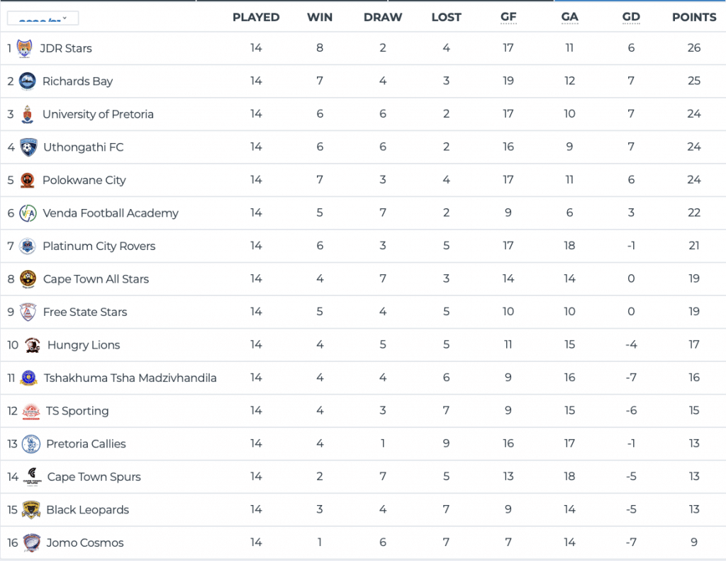 On Sunday both matches ended in draws, as Venda Football Academy and AmaTuks drew 1-1, while Cape Town Spurs and JDR Stars ended with the same scoreline at Athlone Stadium.