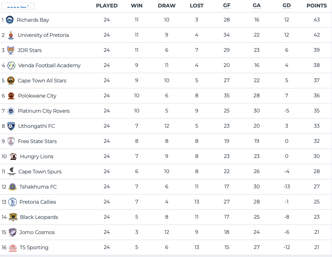 13th-placed Callies meanwhile need to pick up results under new coach Kwanele Kopo in their remaining six games. They are currently on 25 points, and are still in danger of being pulled into the relegation battle.