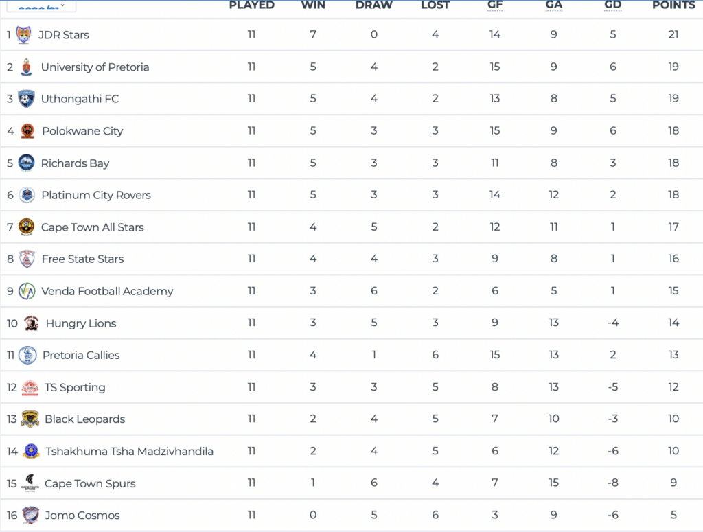 Despite losing on Sunday, JDR Stars remain top of the GladAfrica Championship after eleven rounds of games.