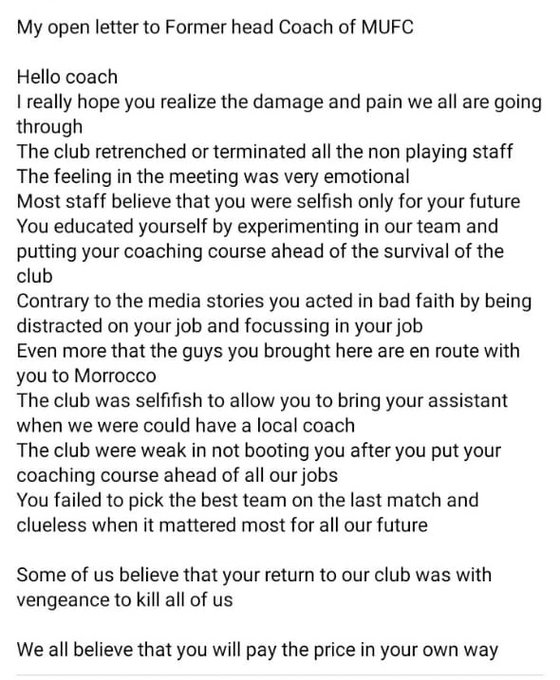The mass clear-out resulted in staff member, Prince Shabalala taking to social media to share an angry open letter with former coach Davids.