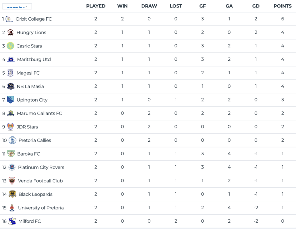 The other two fixtures on Saturday, between Magesi and Pretoria Callies, and between Marumo Gallants and Hungry Lions, both ended in goalless draws.