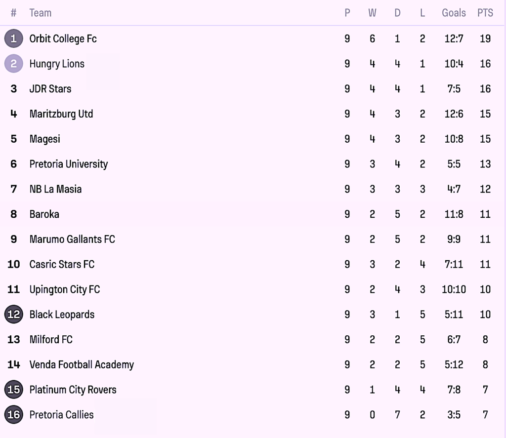 Orbit lost 1-0 to Venda Football Club on Saturday, but despite the loss remain first.