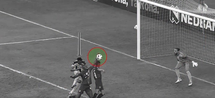 “Now this handball is called deliberate handball because a hand was used towards the ball. Sirino crosses the ball, you can see that a hand was used to stop the ball.