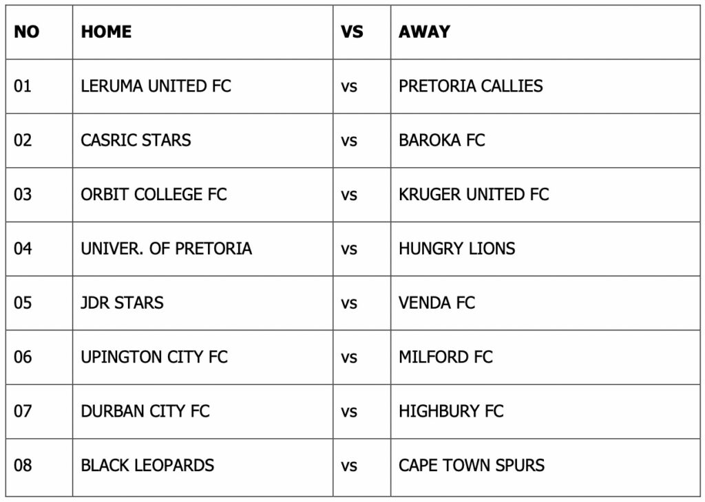 The draw for the Nedbank Cup qualification round took place on Tuesday morning.