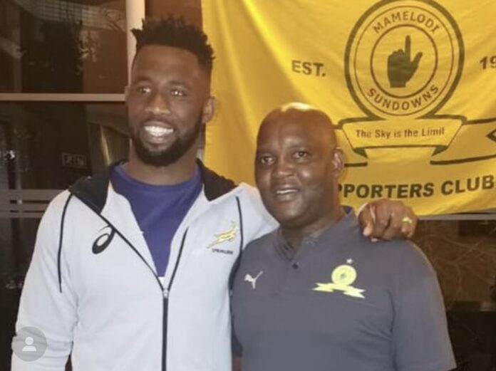 Pitso Mosimane has sent best wishes to the Springbok rugby team ahead of tonight’s World Cup final against New Zealand.