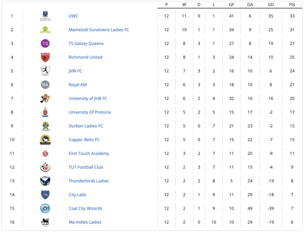Sundowns remain in second place on the table with 31 points from 12 outings. The Wizards remain second from bottom, equal on seven points with City Lads who lost 3-1 to First Touch Academy above them, from 12 encounters.