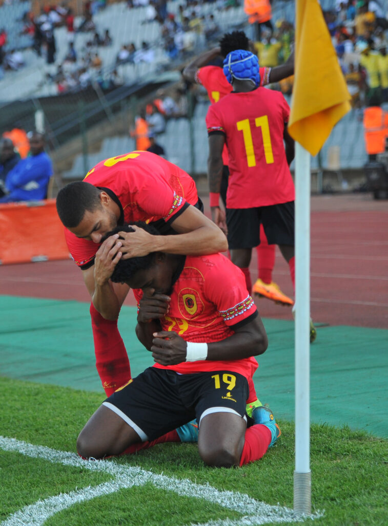 Joaquin Cristovao Paciencia of Angola celebrates goal with teammates during 2023 African Nations Championship Qualifiers match between South Africa and Angola at Dobsonville Stadium on the 04 September 2022 © Sydney Mahlangu/BackpagePix