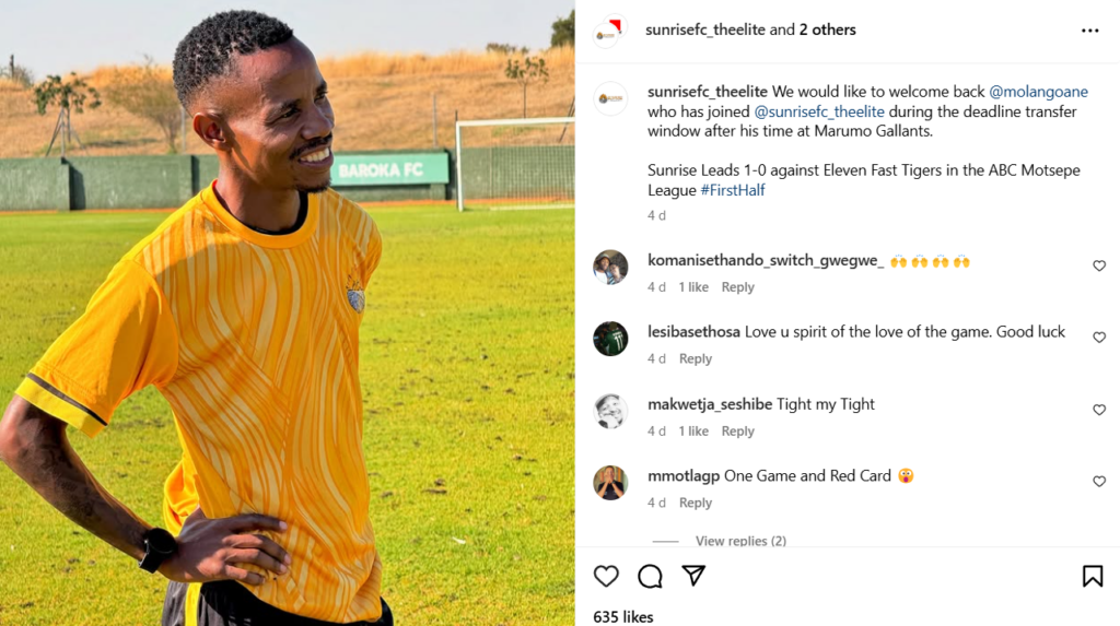Former Orlando Pirates and Kaizer Chiefs winger Joseph Molangoane has been snapped up by ABC Motsepe League side Sunrise FC after parting ways with Marumo Gallants.